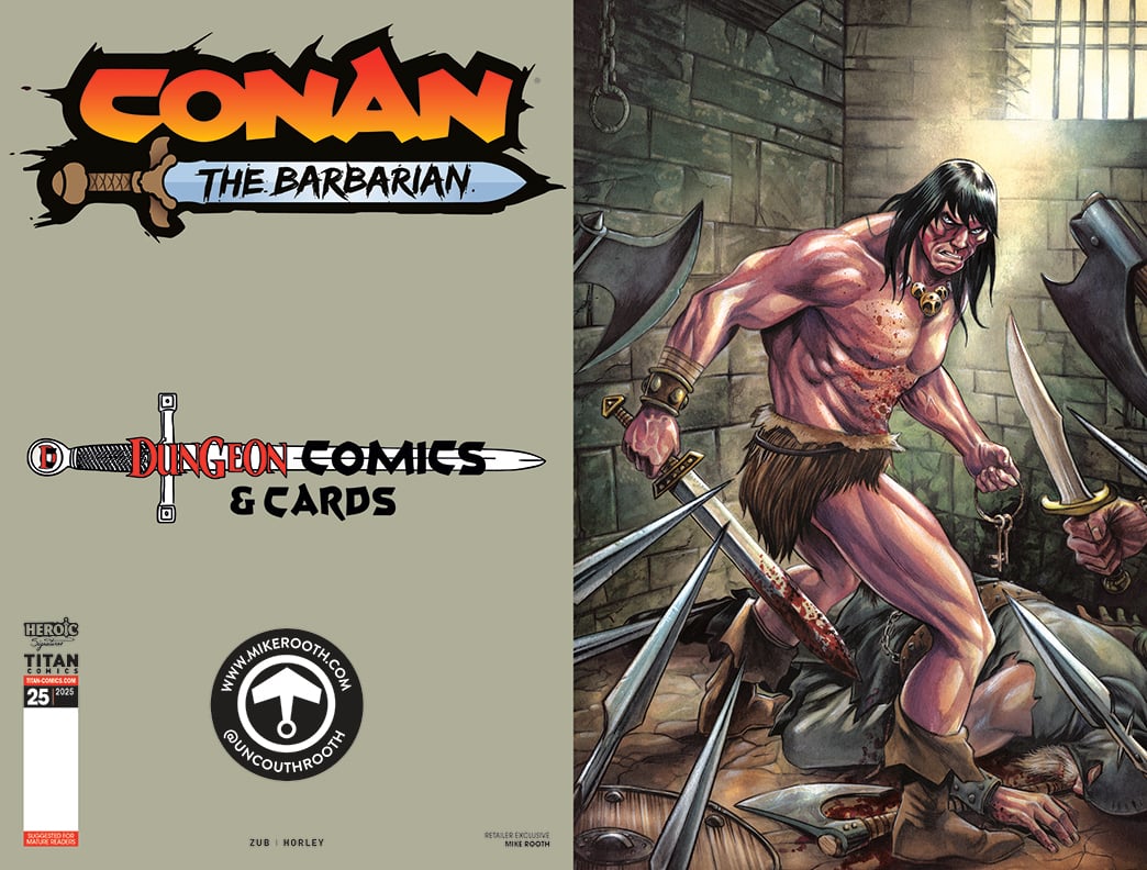 This is my exclusive variant cover for CONAN THE BARBARIAN #25 (TITAN COMICS/HEROIC SIGNATURES, October 2025), and I partnered with my friends at Dungeon Comics & Cards.
